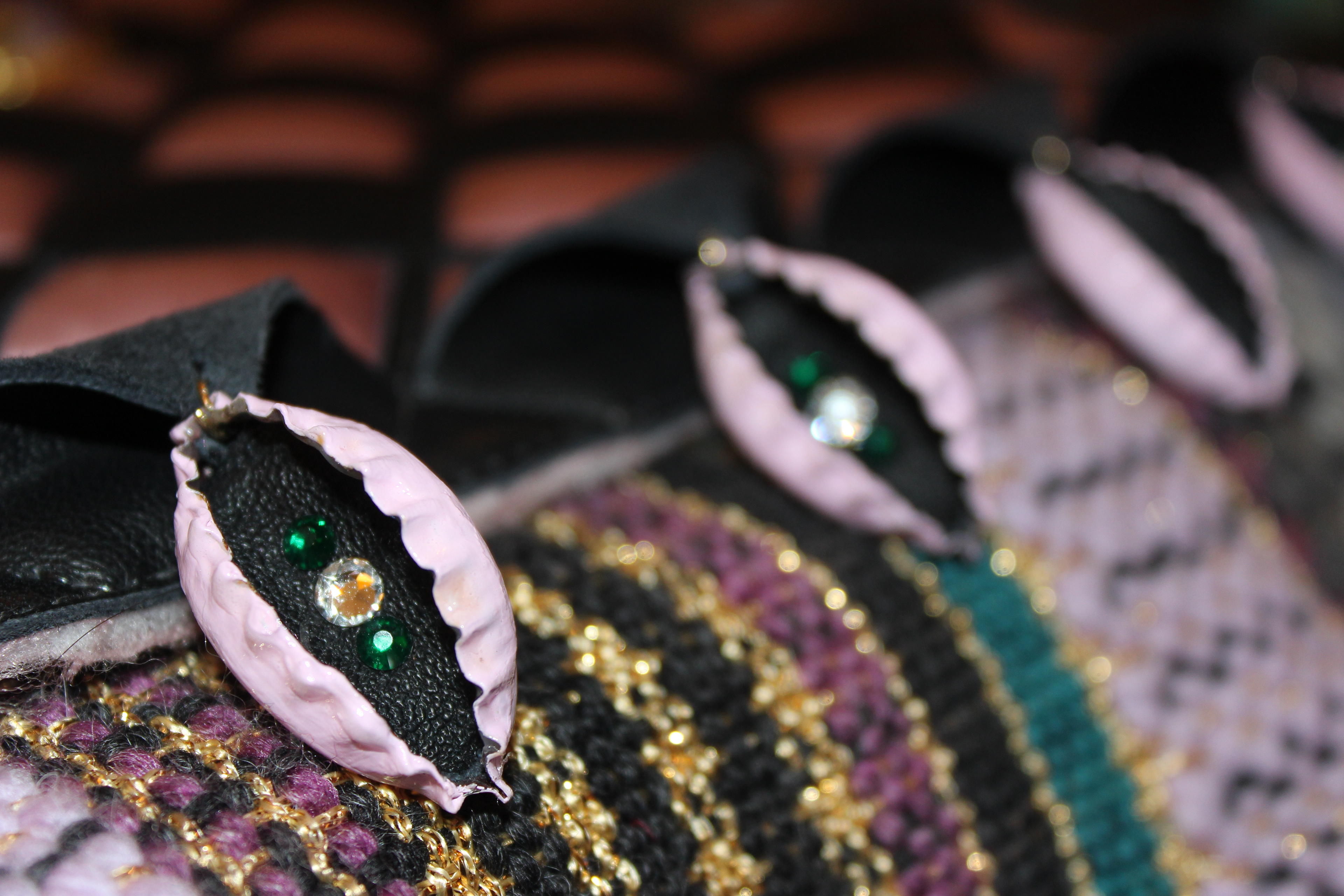 QUILLING IS A SLOW, HAND-CRAFT PROCESS I USE TO CREATE LATTICES MADE UP OF QUILLED STRIPS OF PLASTIC SEWN TOGETHER TO CREATE A FABRIC. MADE UP OF INDIVIDUAL SHAPES, THE TEXTURE AND DETAIL CREATED BY THIS TECHNIQUE IS MUCH LIKE A CONTINUAL LINE DRAWING AND THE DEPTH OF COLOUR THAT CAN BE CREATED BY STACKING STRIPS IS FASCINATING.